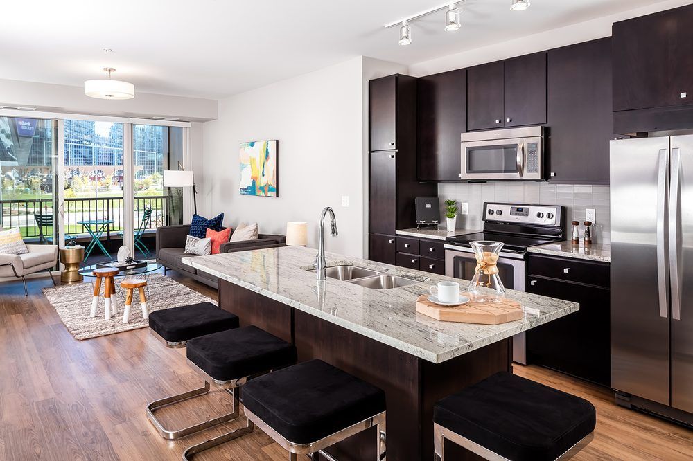 We invite you to browse through Edition Apartment’s floor plans. Our community offers eight custom layouts of sprawling studios, one, two, and three-bedroom homes designed to fit various needs and lifestyles. Each floor plan provides elevated touches to create a high-end living space, like arched ceilings, solar shades, and gourmet kitchens with Whirlpool appliances.